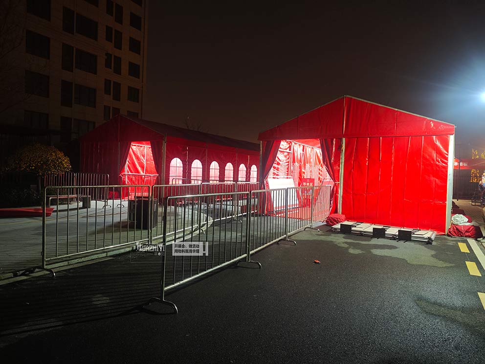 鄭州鐵馬出租布置護欄助力正都花園分房活動。在正都花園正在舉辦一場新房分房活動,現場有兩座紅色篷房吸引眼球。除此之外,還有一片片鐵馬護欄連接在一起,在篷房外面布置的秩序井然。